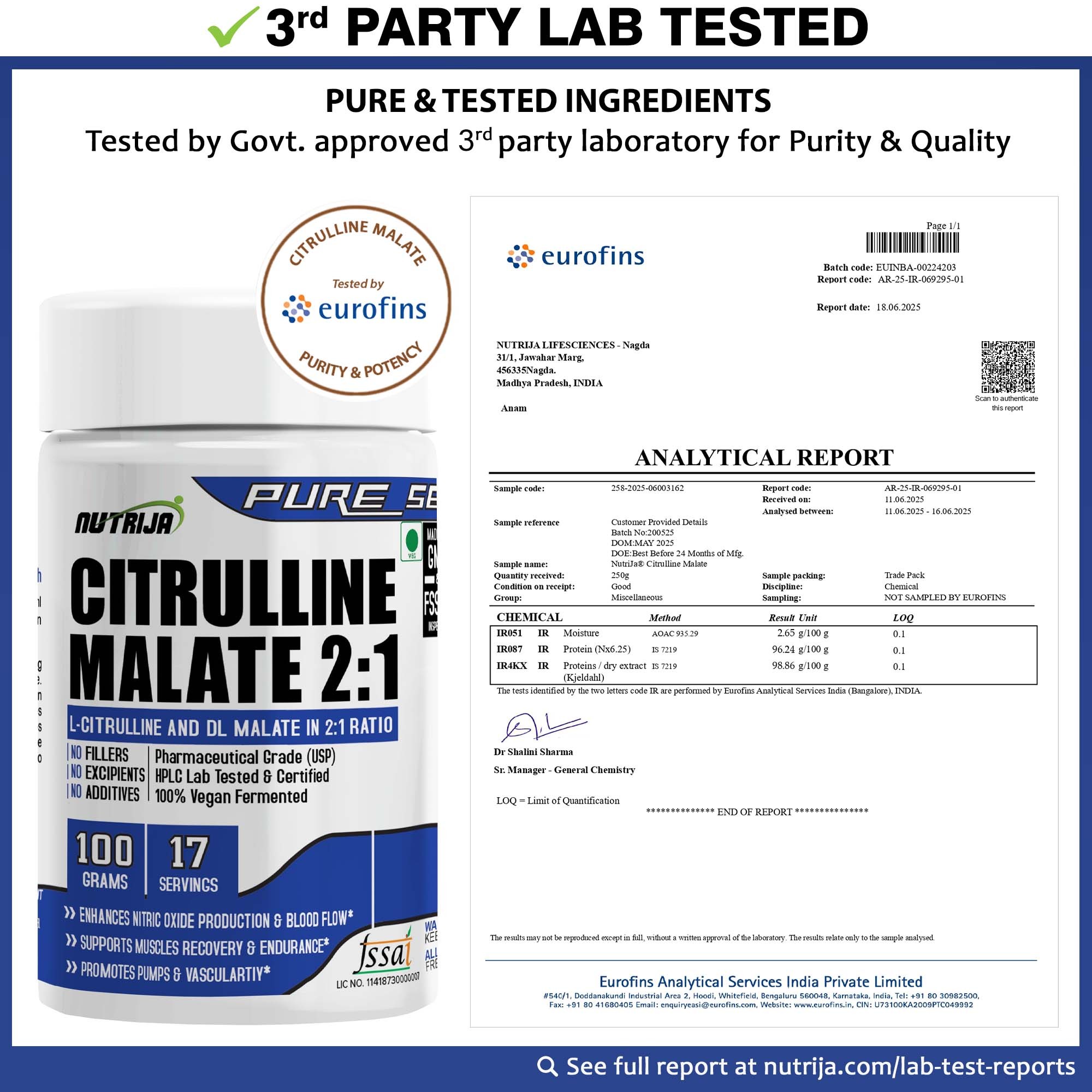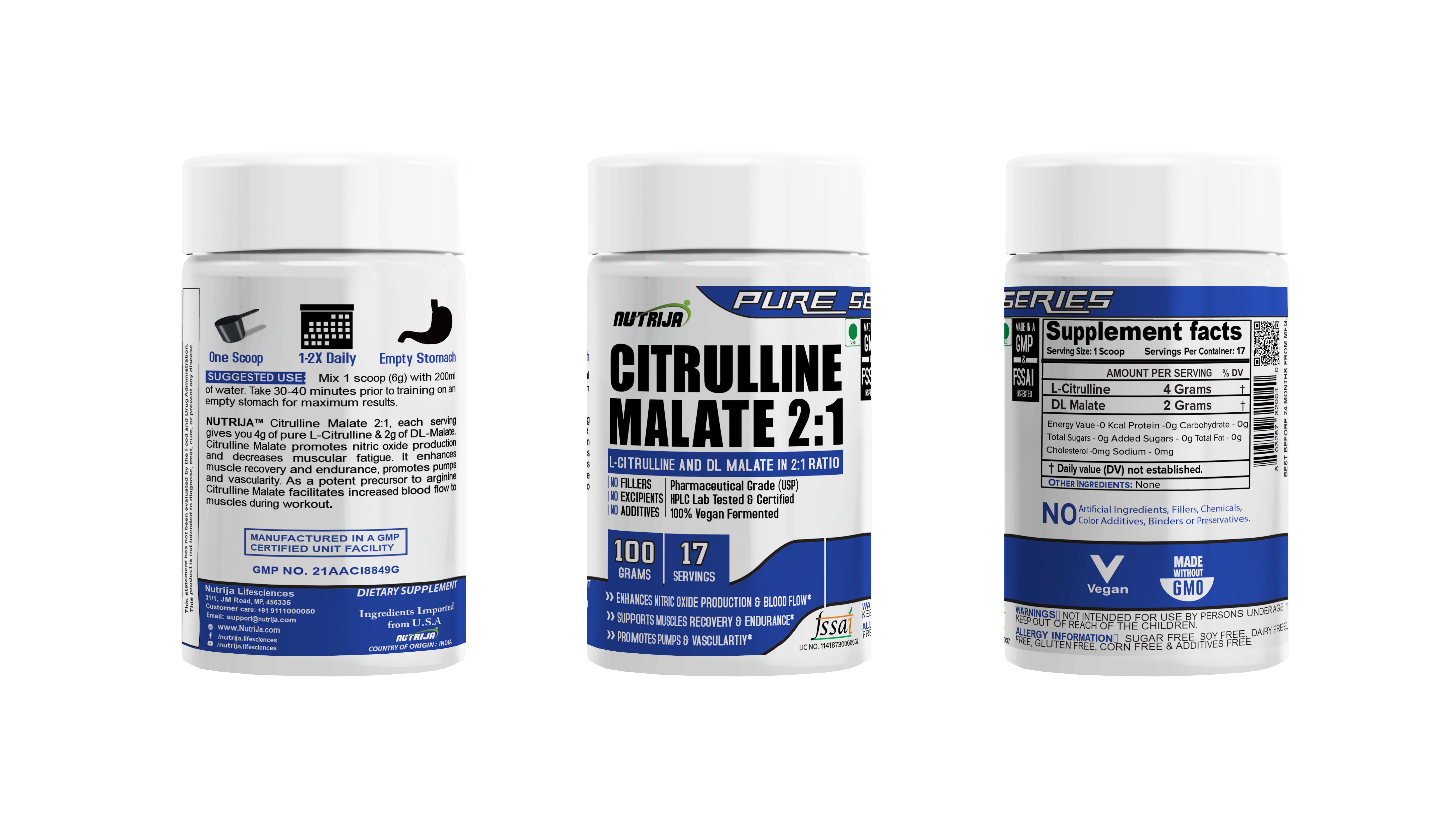 - NUTRIJA™ Citrulline Malate Powder is USP grade & 100% Pure & Unflavored.
