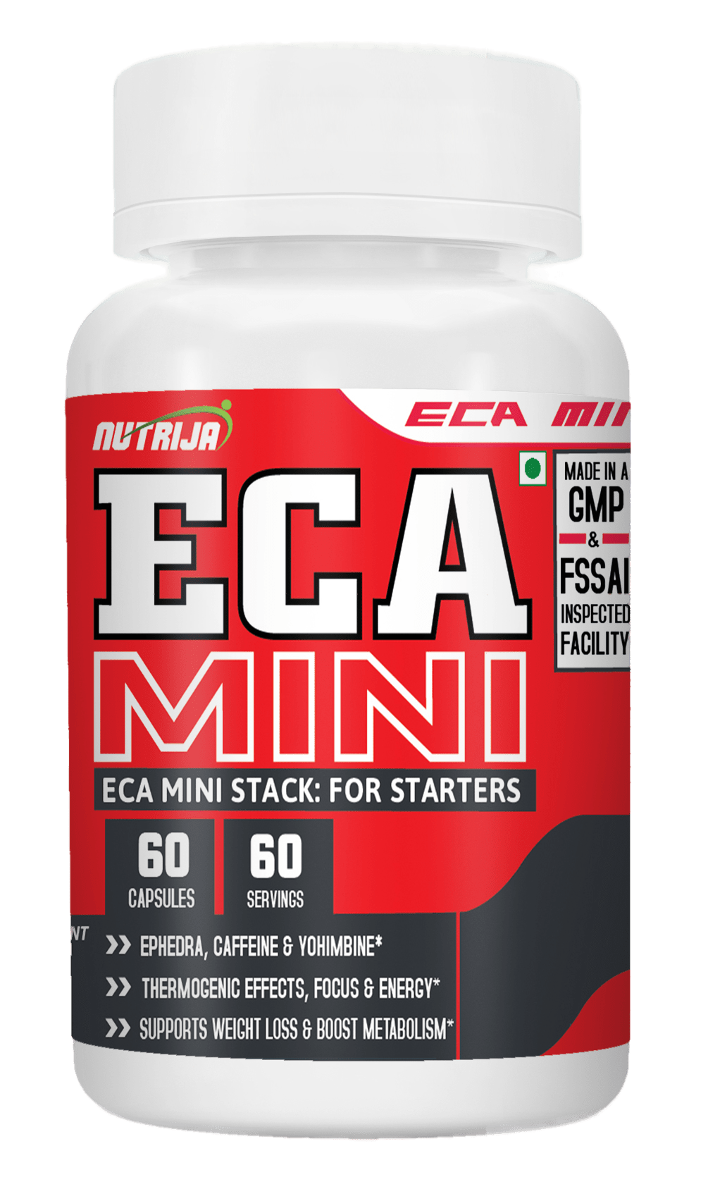 NUTRIJA ECA MINI STACK is combination of best and proven fat loss supplements, each serving of ECA MINI STACK provides, Ephedra Extract Caffeine Anhydrous, Yohimbine HCL, White Willow Bark Extract, in a perfect combination, which accelerates fat loss, boosts metabolism, increases performance and energy.