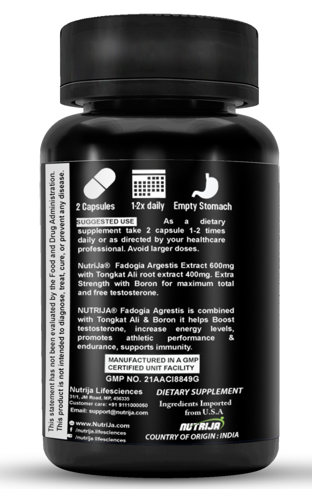 NUTRIJA® Fadogia Agrestis + Tongkat Ali supplement with Boron is a completely vegan formula Ingredients sourced from Nigeria & Indonesia. Fadogia Agrestis works great when combined with Tongkat Ali (longjack) & Boron.