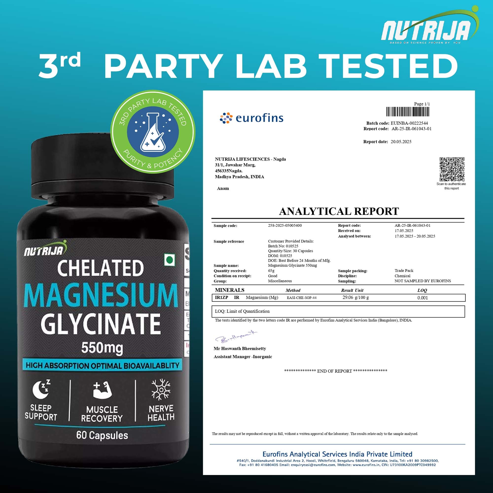 - HIGH-POTENCY & MAXIMUM ABSORPTION: NutriJa® Chelated Magnesium Glycinate 550mg is formulated for superior absorption, delivering optimal bioavailability with minimal laxative effect. This ensures your body efficiently absorbs magnesium. Magnesium Glycinate is highly bioavailable, offering better absorption compared to Magnesium Citrate.