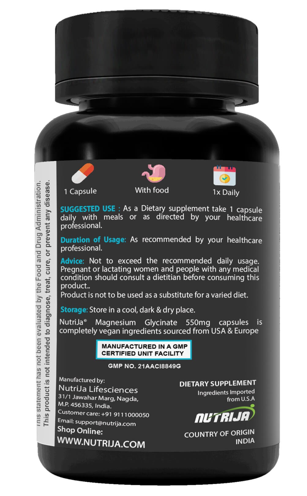 - 22% ELEMENTAL MAGNESIUM: NutriJa® Magnesium Glycinate 550mg provides 22% Elemental Magnesium each capsule delivers a high concentration of magnesium, ensuring you get a Get high amount of magnesium per capsule.
