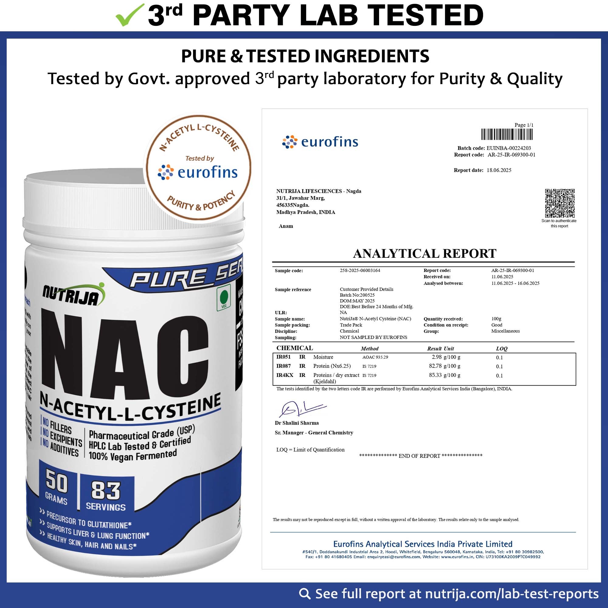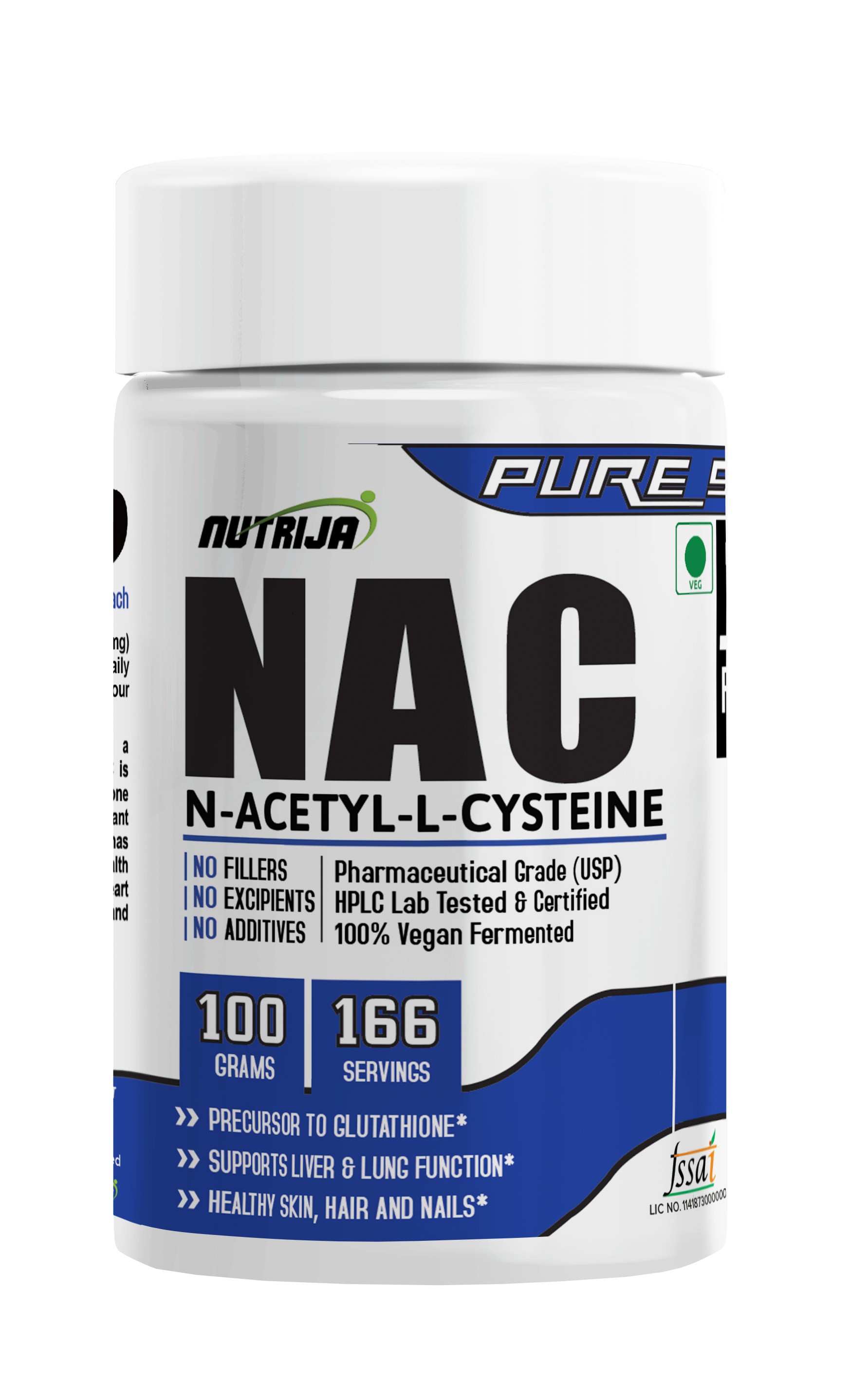NUTRIJA™ N-Acetyl Cysteine (NAC) is USP Grade and free of flavors & fillers thus you get 100% contents of N-Acetyl Cysteine. We source N-Acetyl Cysteine (NAC) in India from USA based reputed GMP certified facility and are tested in-house as well as by third-party labs to ensure purity and potency of N-Acetyl Cysteine. See "Certificate Of Analysis" at the top right.