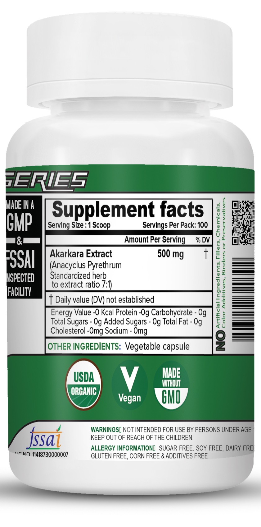 | Ingredients | Anacyclus Pyrethrum Extract 7:1 (Akarkara Extract 7:1) |