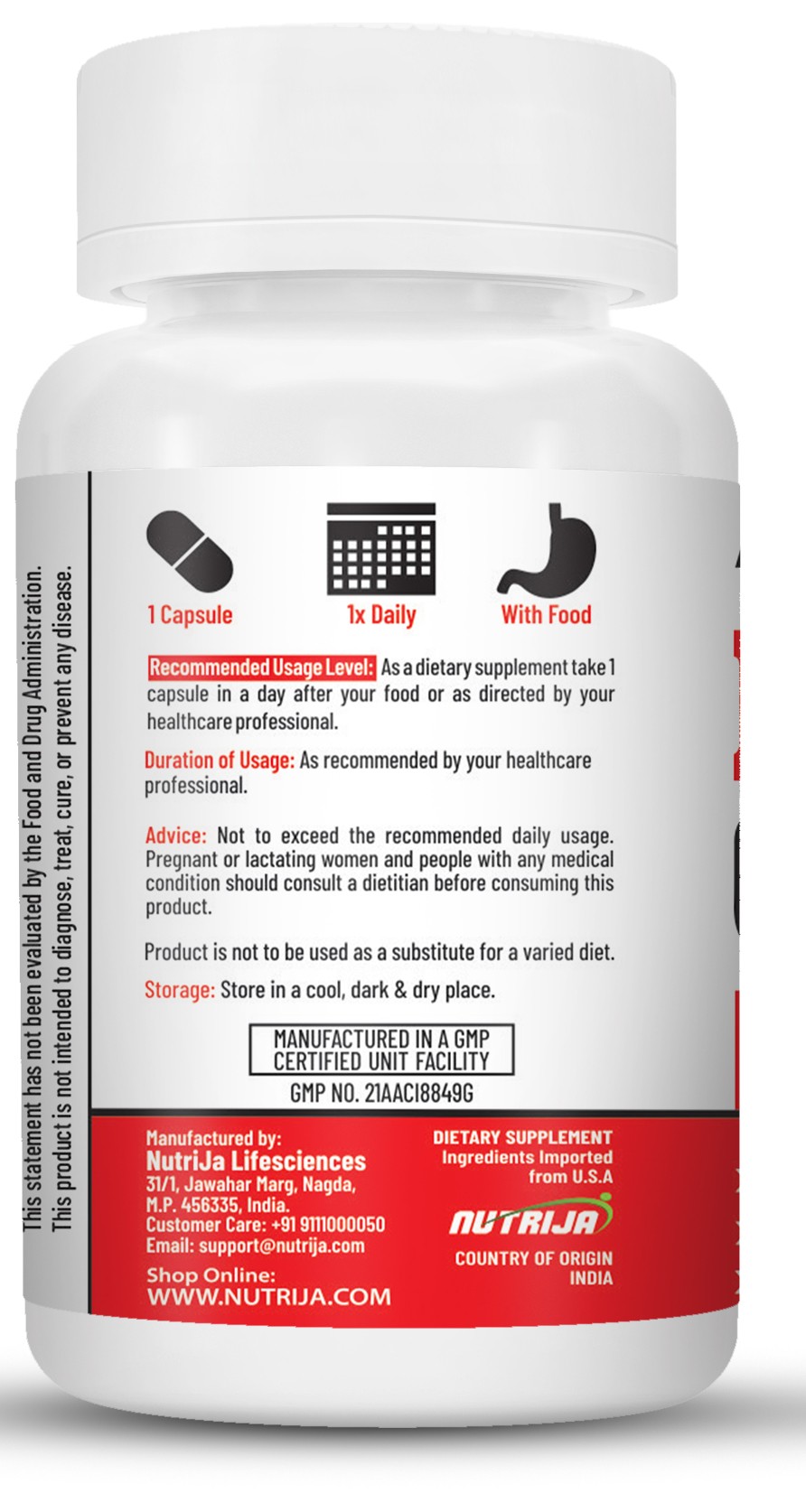 Quality Pledge: Made in an FSSAI inspected facility to meet the stringent standards of US Pharmacopeia (USP) for quality, purity, potency and disintegration.