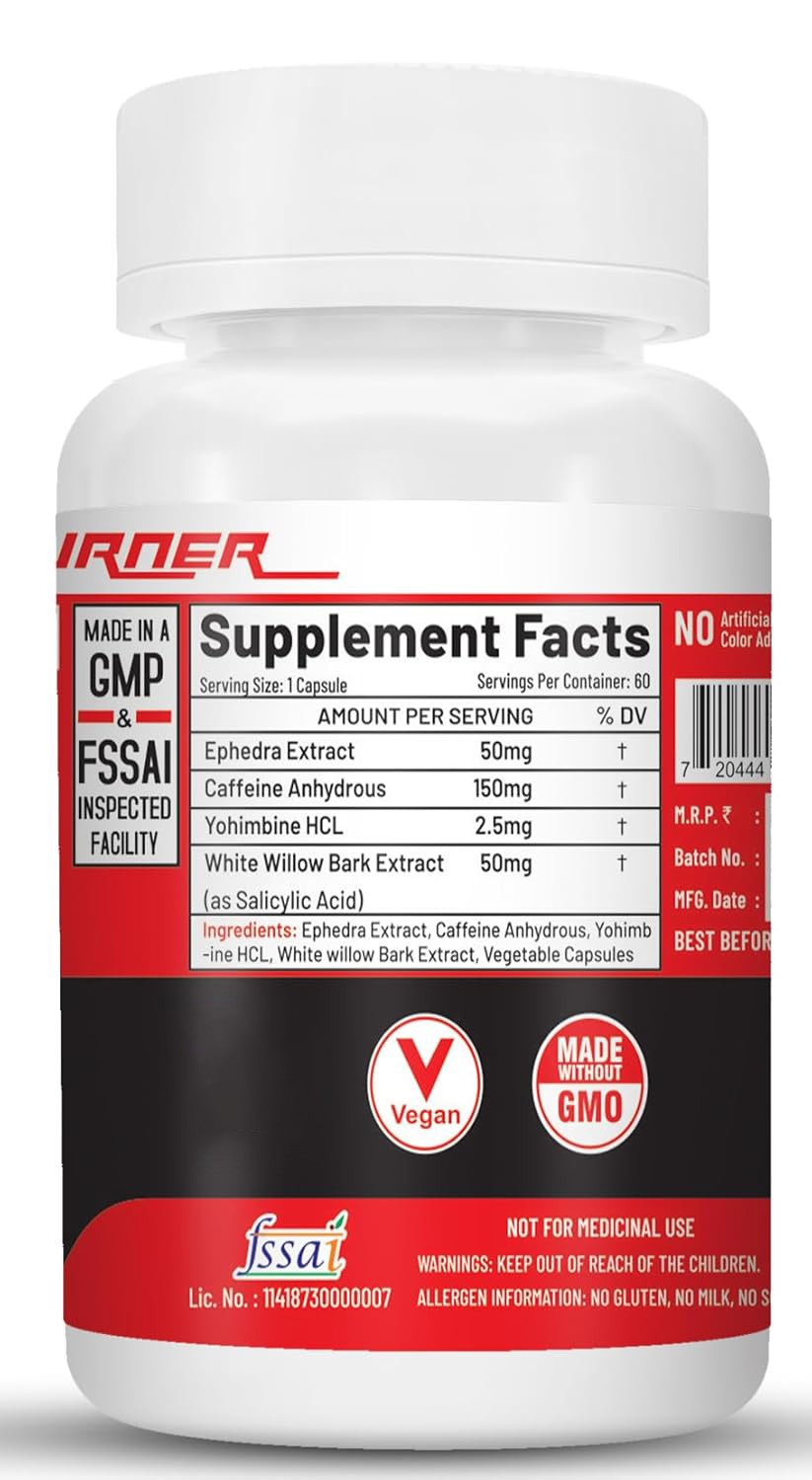 - Each Serving Provides you 25mg Ephedra Extract, 150mg Caffeine Anhydrous , 2.5mg Yohimbine HCL, and 50mg White Willow Bark Extract