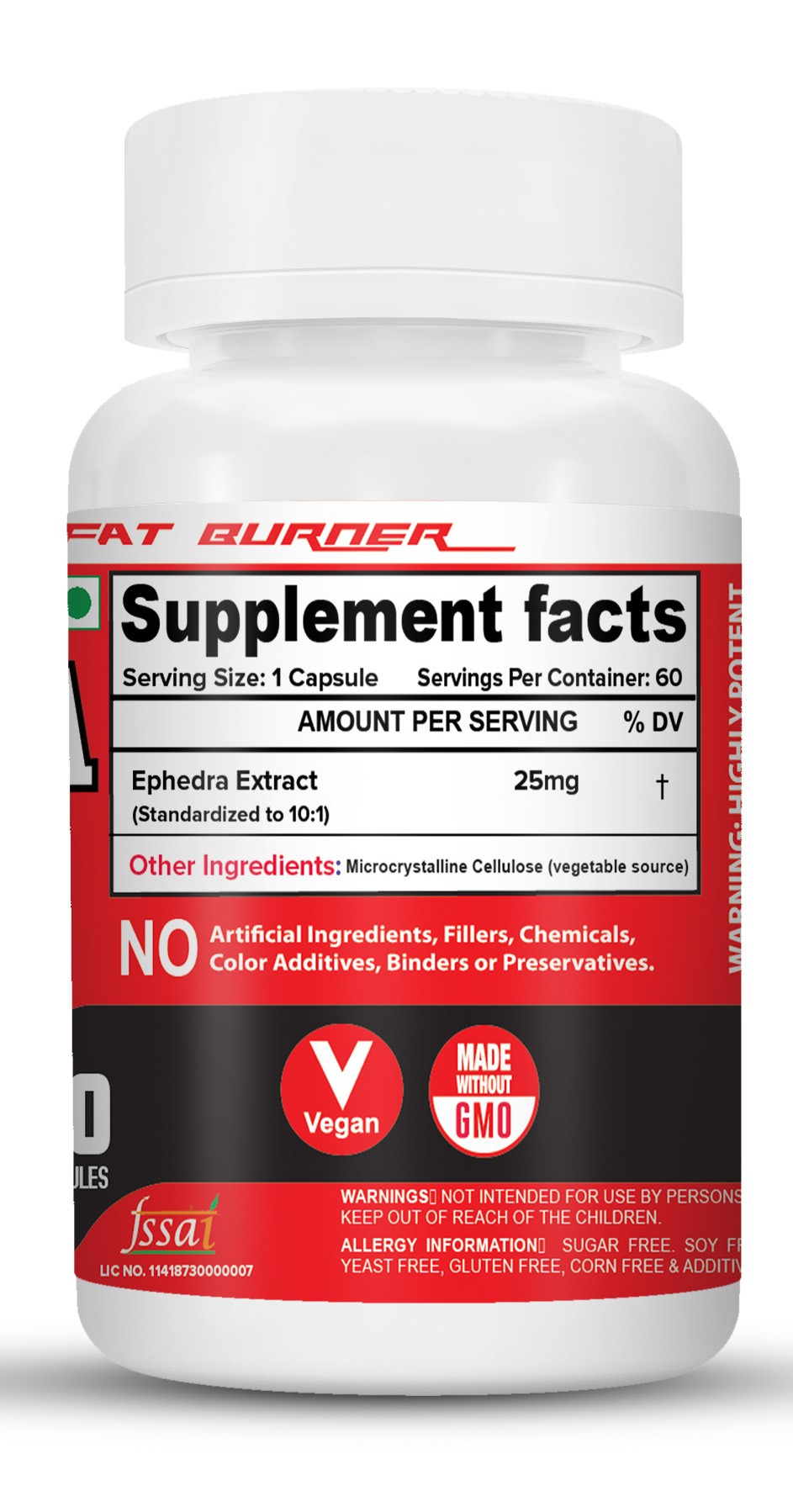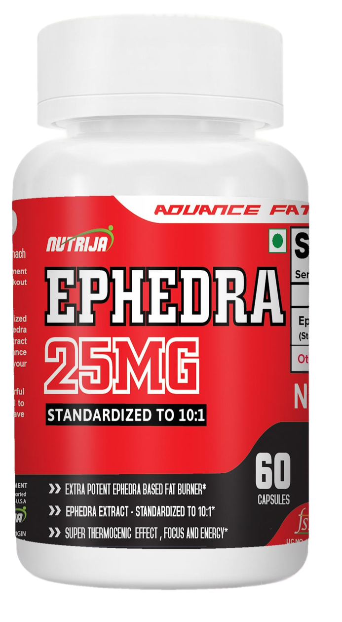 Ephedra can help ramp up your metabolism by 5% which melts fat right off revealing your muscles. 25mg of Ephedra capsules provide a sustained and clean energy boost, while also giving you weight loss assistance and appetite control. NUTRIJA® Ephedra Extract (standardized to 10:1 ratio) is a completely vegan formula Ingredients sourced from USA & Europe