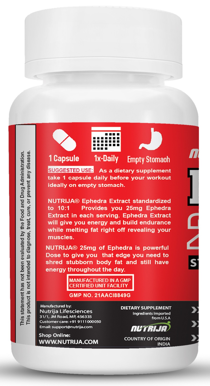 NUTRIJA® Ephedra Extract (standardized to 10:1 ratio) is one of the most super potent thermogenic fat burner. 25mg of Ephedra extract is a powerful dose to give you that edge you need to shred stubborn body fat and still have energy throughout the day.