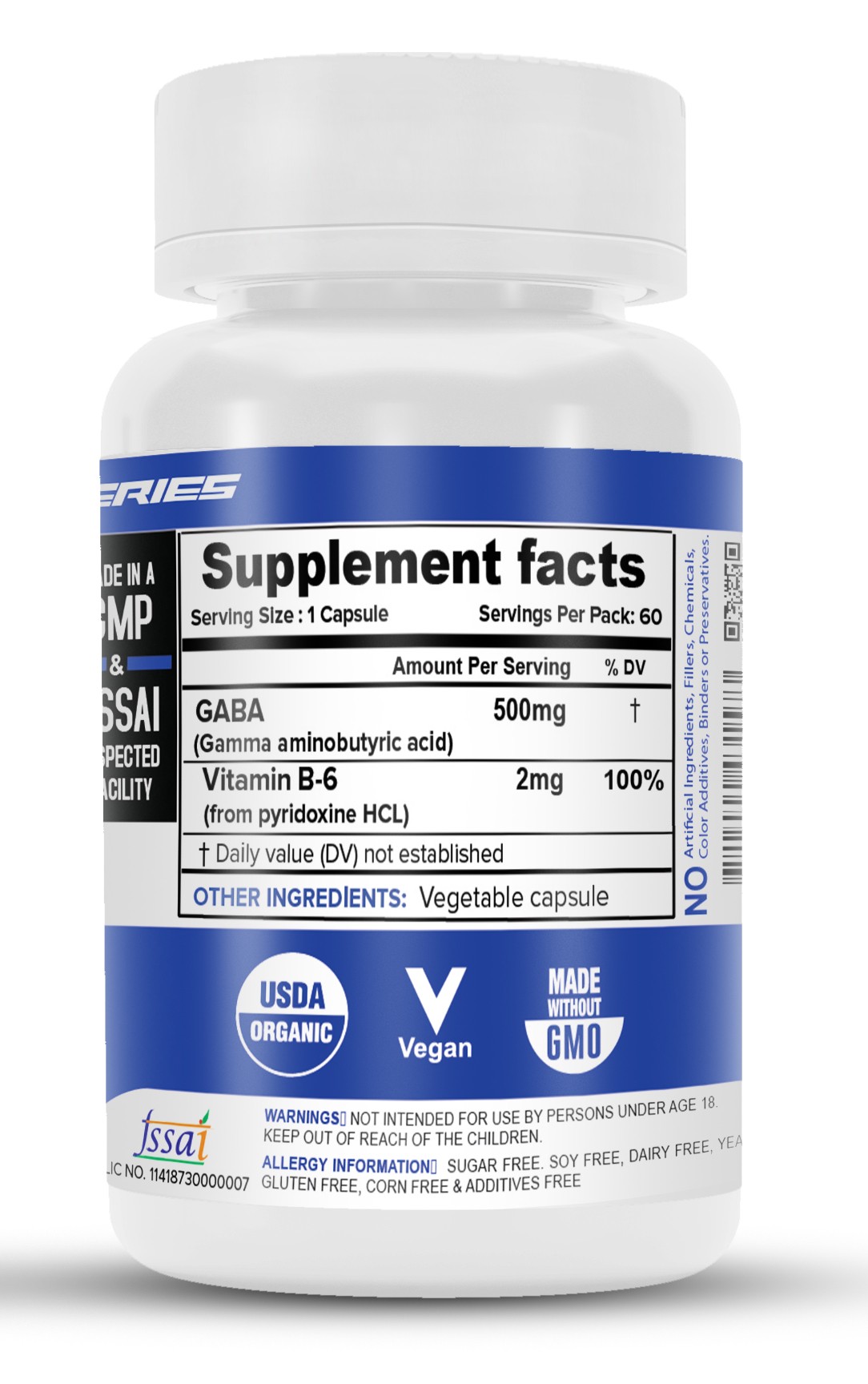 - Each capsule provides you 500mg of pure GABA with Vitamin B-6