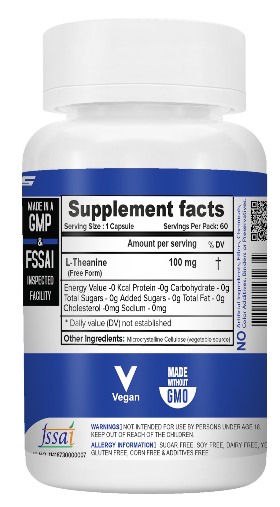 | Ingredients | 100% L-Theanine (free form) |