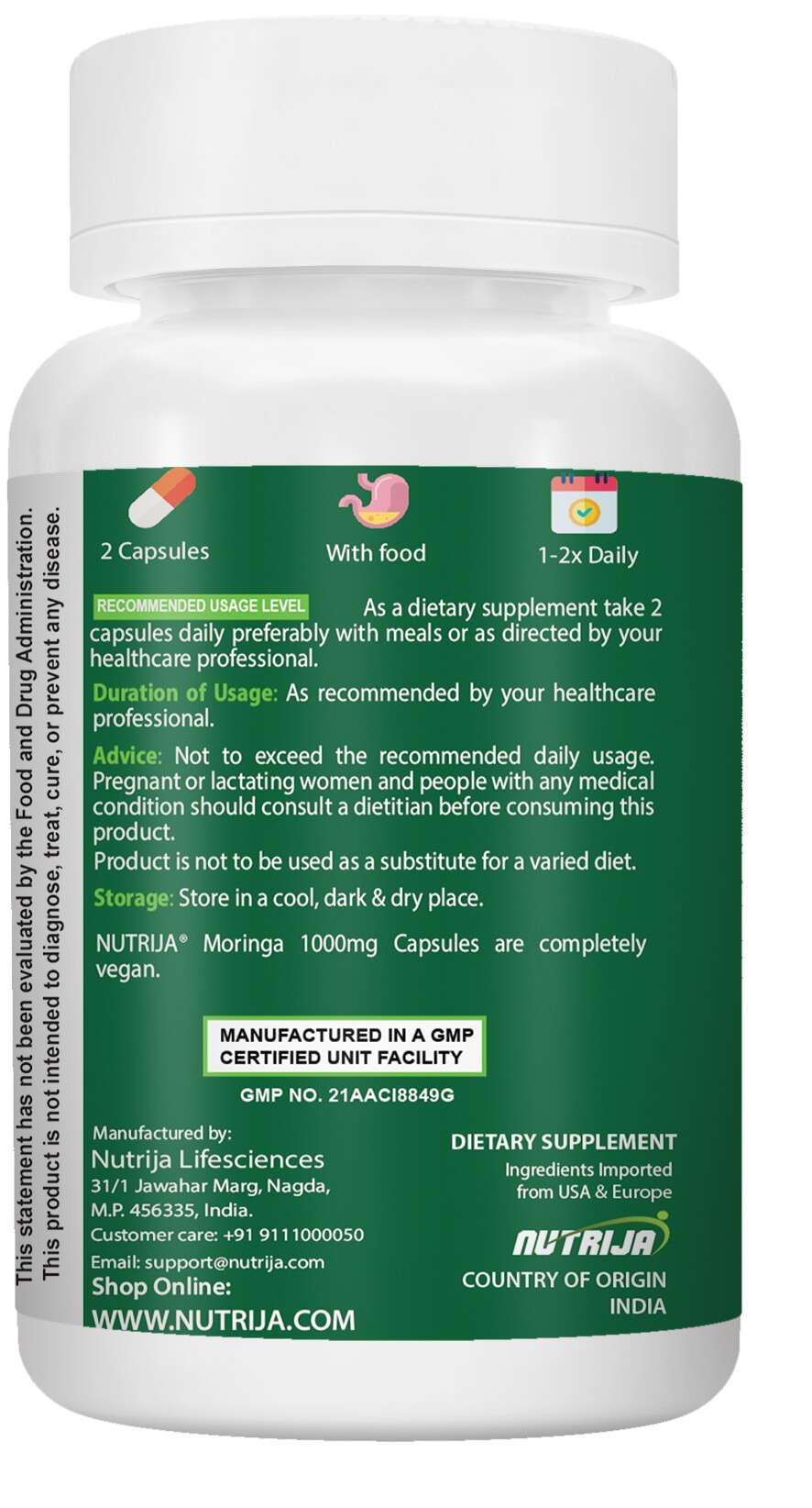 | Ingredients | Moringa 1000mg Capsules |