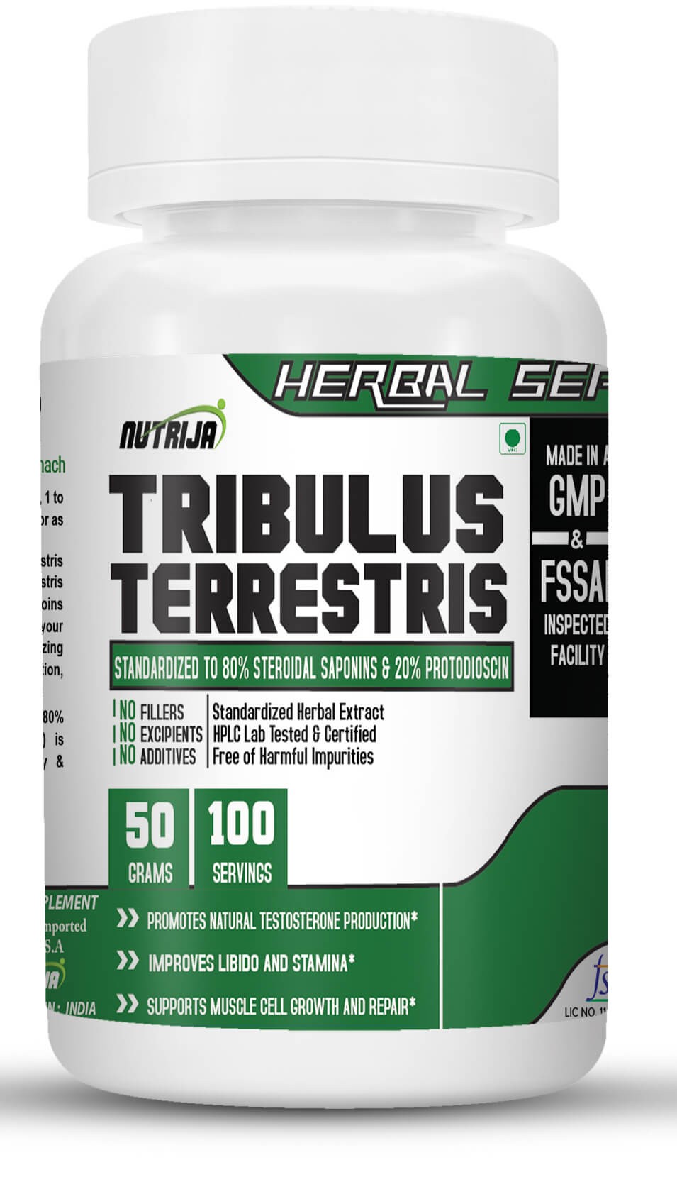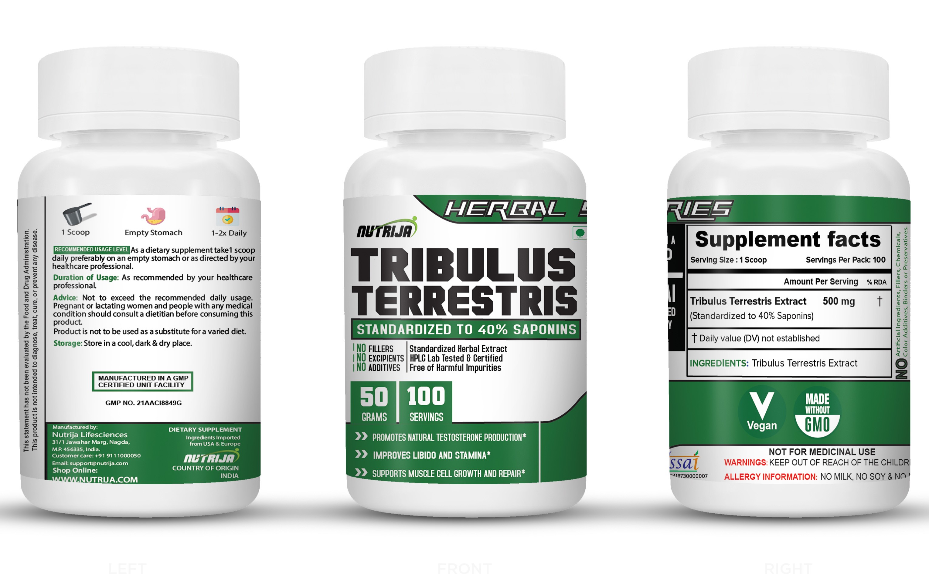 NUTRIJA™ Tribulus Terrestris Extract is standardized to 50% Steroidal Saponins in contrast to other brands you will find just raw Tribulus Terrestris powder. We source Tribulus Terrestris Extract in India from reputed GMP certified facility and are tested in-house as well as by third-party labs to ensure purity and potency of Tribulus Terrestris Extract. See "Certificate Of Analysis" at the top right.